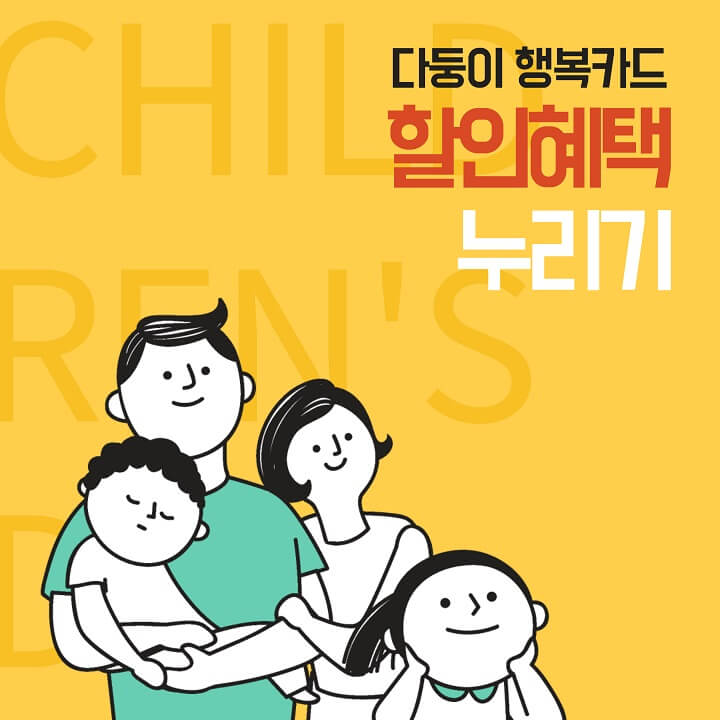 오늘은 '다둥이카드'에 대한 이야기를 해보겠습니다. 정확한 명칭은 '다둥이행복카드'입니다. 지난 8월 17일 교육부가 제7차 사회관계장관회의를 열어 정부, 지방자치단체의 다자녀가구 지원정책 추진 현황 및 개선 방향에 대해 논의했습니다. 논의 핵심은 '다자녀 기준'입니다. 교육부는 다자녀 기준을 기존 3자녀 이상에서 2자녀 이상으로 완화하기로 했습니다. 이에 따라 다둥이카드 발급 시 문화·여가생활 등 다양한 할인혜택 등 양육비 지원이 가능하니 꼼꼼히 챙겨보시기 바랍니다.