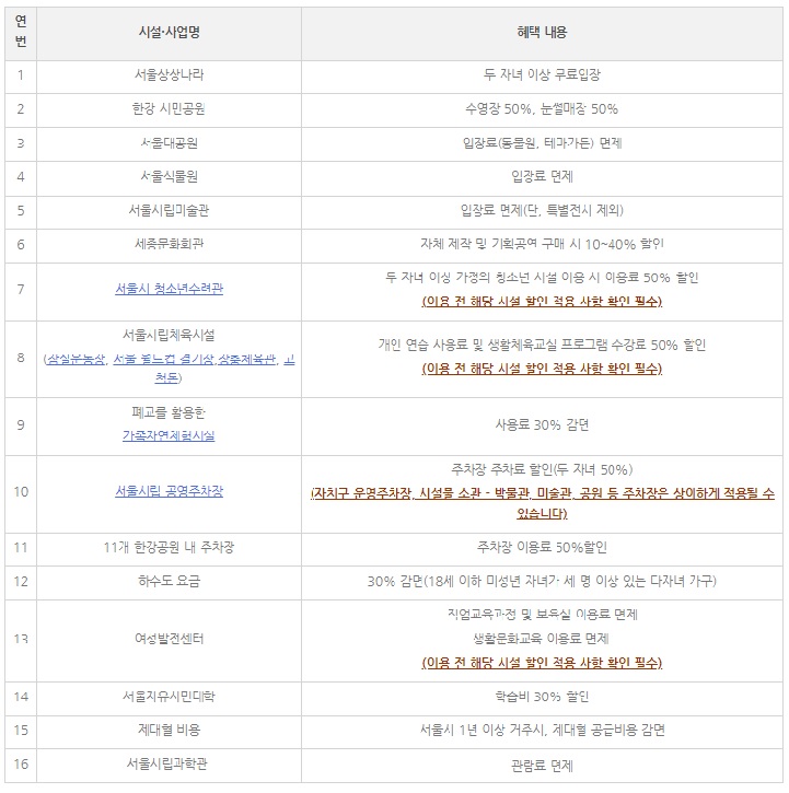출처 : 서울시 홈페이지 '다자녀가족 지원(다둥이행복카드)'