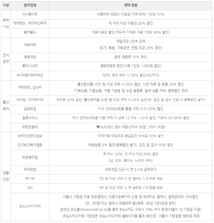 ※ 서울시 자치구별 다둥이카드 협력업체 찾아보기 - http://seouli.bccard.com/app/iseoul/usrFirmList.do
