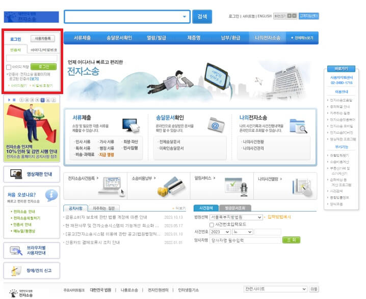 3-1. 대법원 전자소송 사이트 접속 및 로그인