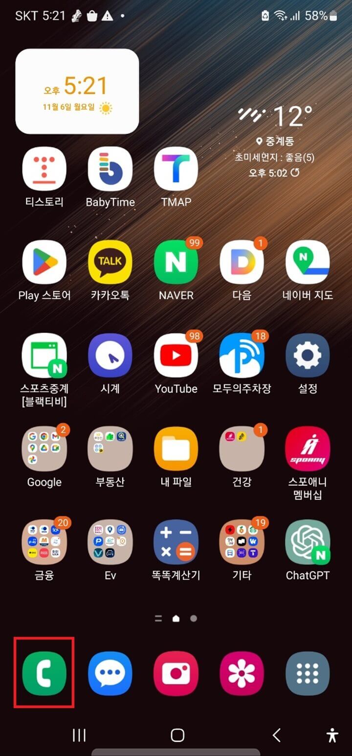 Step1. 스마트폰 홈화면에서 '통화' 버튼을 클릭합니다.