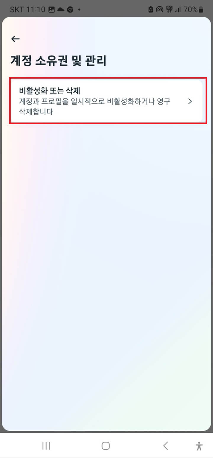 Step7. 계정 및 소유권 및 관리로 넘어오면 '비활성화 또는 삭제'를 클릭합니다.