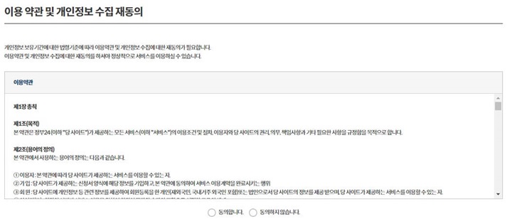 Step6. 인증요청을 하면 이용 약관 및 개인정보 수집 재동의 등 동의요청이 뜹니다. 동의합니다.