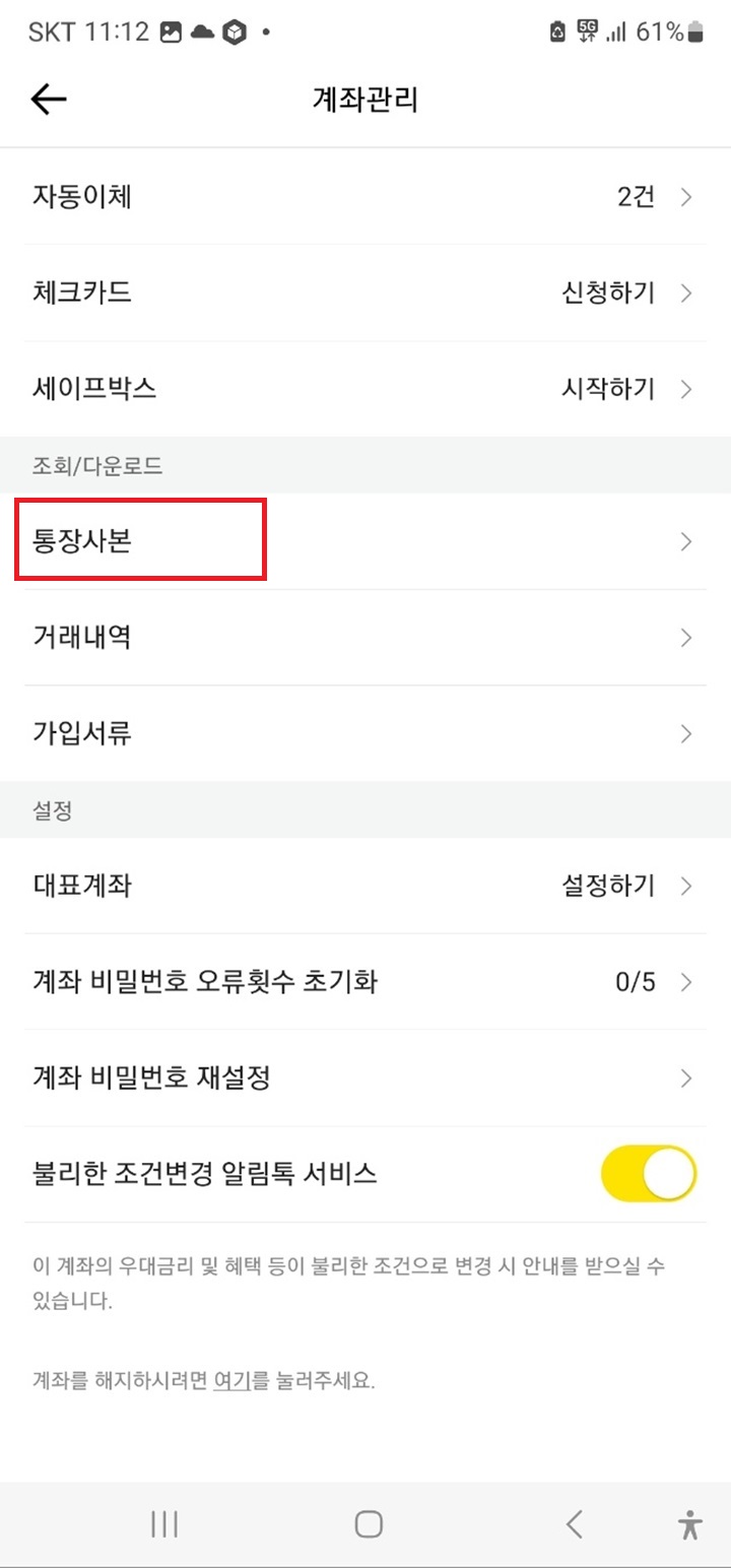 카카오뱅크 통장사본 조회, 저장