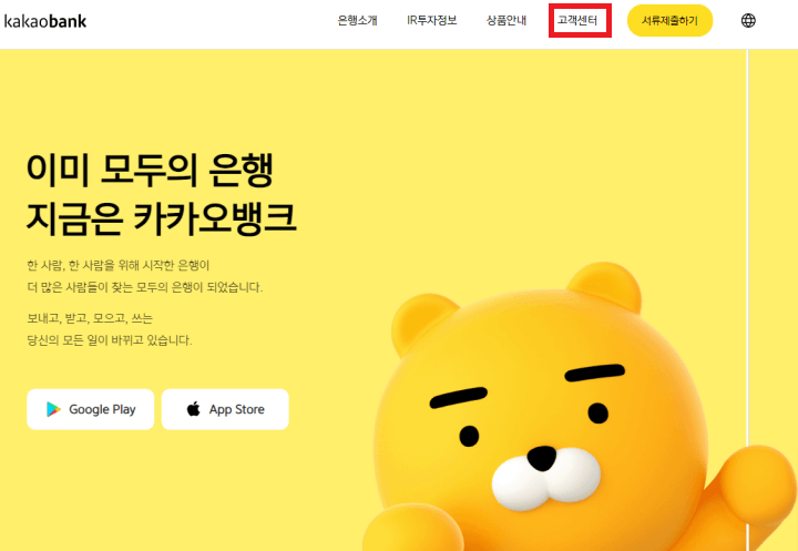 Step9. PC에서 인터넷 포털을 통하거나 카카오뱅크 사이트로 직접 이동합니다. 카카오뱅크 메인페이지 상단을 보시면 '고객센터' 가 있습니다. 클릭합니다.