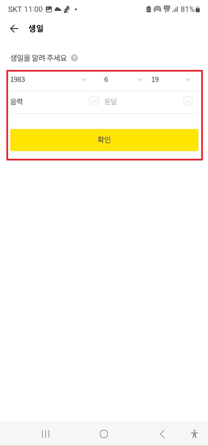 Step5. 생일을 설정할 수 있습니다. 여기서 실제 나의 생일을 입력하면 완료입니다.