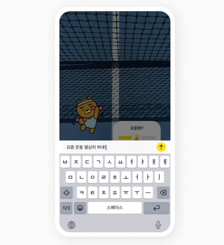Step3. 우측 상단버튼 통해 텍스트, 이코티콘, 사진 등 업로드 나의 일상 또는 기분을 표