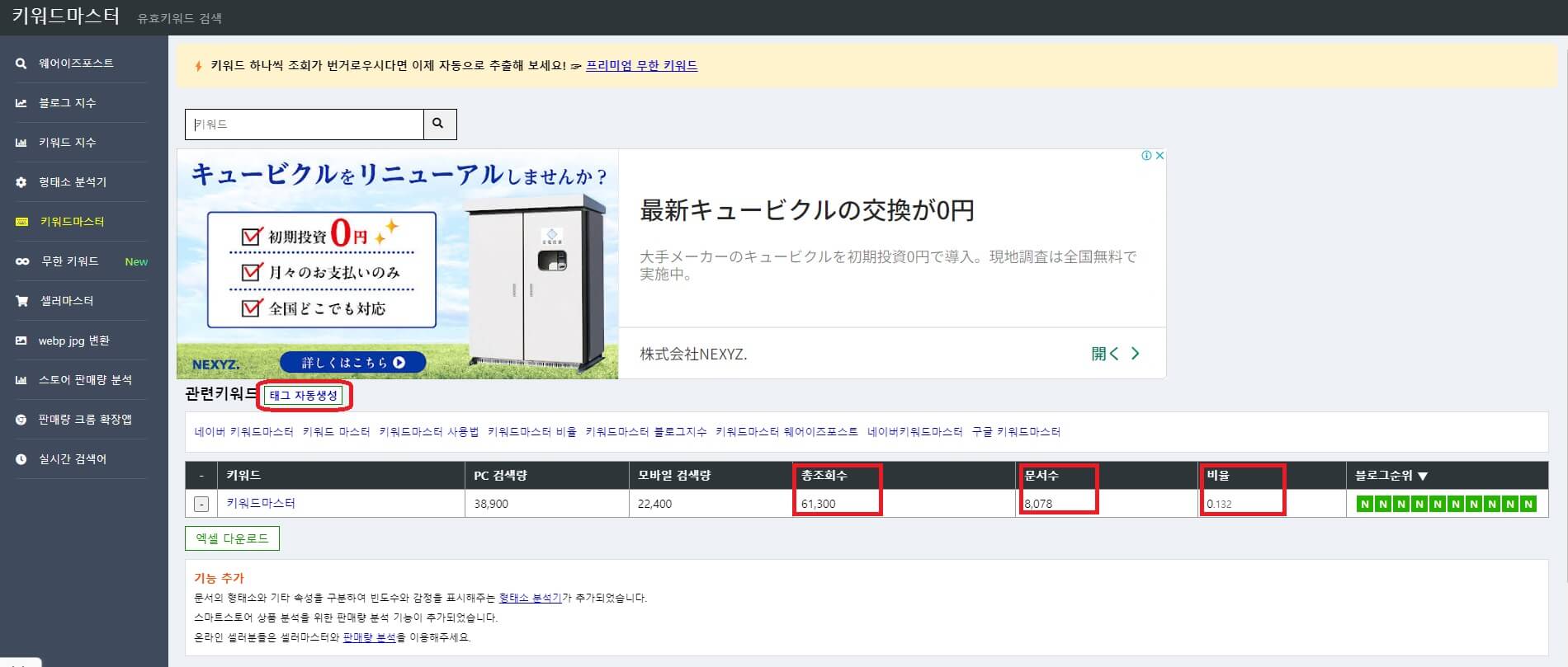 제가 티스토리를 블로그 운영하면서 키워드 검색기로 가장 애용하는 것 중 하나가 키워드 마스터입니다. 웨어이즈포스 라고 하는 사이트입니다. 매우 직관적이고 사용하기 편리해서 애용하고 있습니다.
