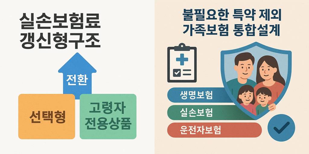 - 보험 리모델링: 비급여 보장 축소형 또는 선택형 전환을 통해 월 보험료를 40% 이상 절감 가능
